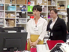 Still dressed in her business suite, Hitomi Hayama is on her knees sucking everyone’s cock. Her blouse is open so the guys can squeeze her tits, then one of the boy’s decides to rip open her pantyhose and stick his dick into her hairy pussy from behind. He hammers away and then decides her pantyhose just needs to come off. The other guys help hold her in place as he fucks her from one position to another. Her pussy is creaming from the fucking she is getting, and that leads to her guy losing his semen inside her snatch. The other dudes then line up and one by one shoot off a load of jizz all over her face.